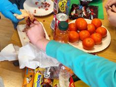 * jaki zapach czujemy wąchając owoce, czy umiemy obierać mandarynkę, jaki smak ma granat...