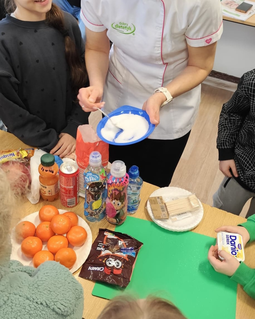 Zdjęcia mówią same za siebie jakie zainteresowanie wzbudziło w dzieciach to co powinny jeść a czego nie i liczenie łyżeczek cukru