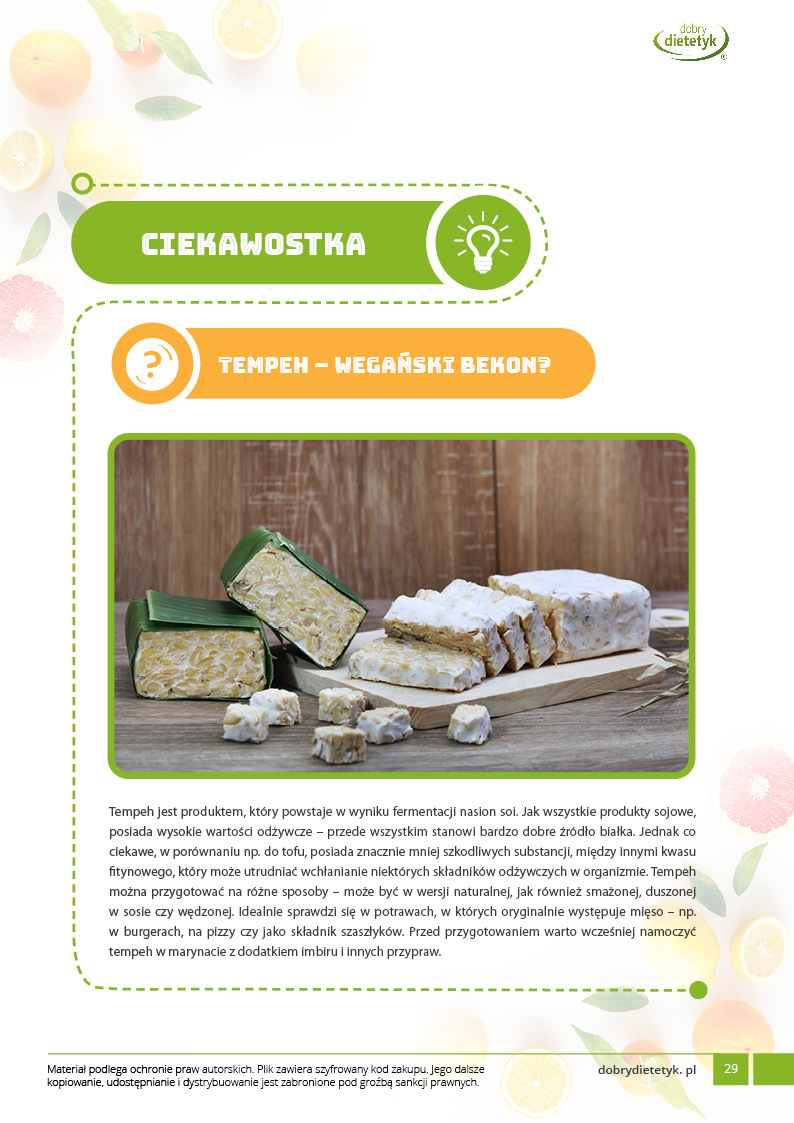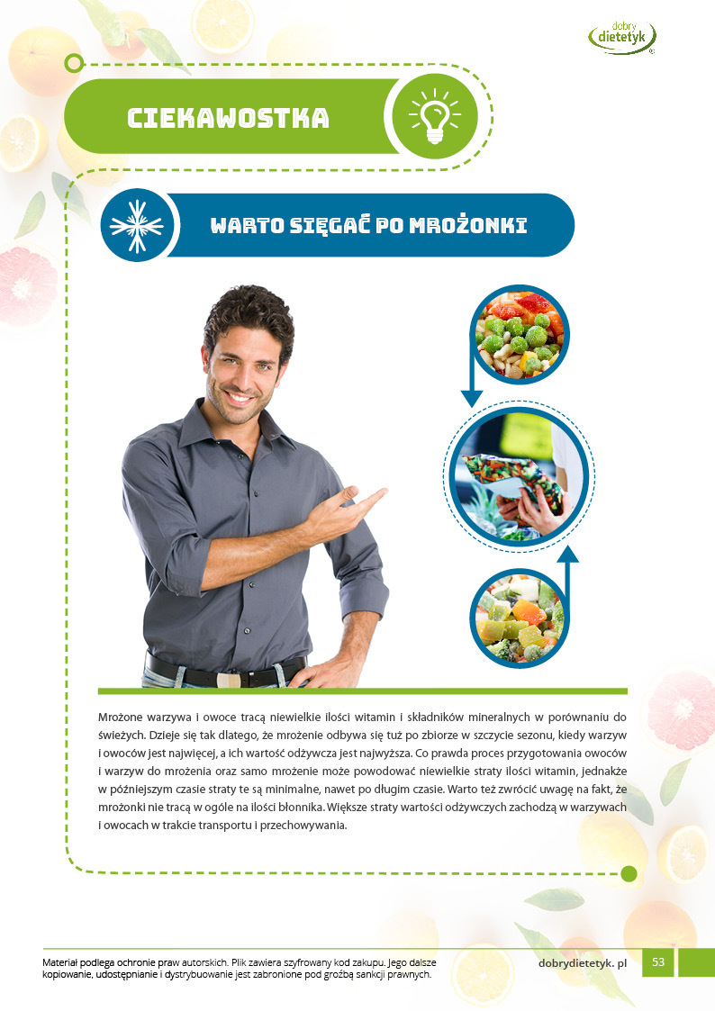 Dodatkowo do opracowanego planu dietetycznego otrzymasz atrakcyjnie przygotowane ciekawostki i wiadomości żywieniowe, które mam nadzieję pozwolą Ci zrozumieć wiele spraw związanych z nurtującym Cię problemem, a także przyczynią się do zwiększenia ogólnej wiedzy żywieniowej.