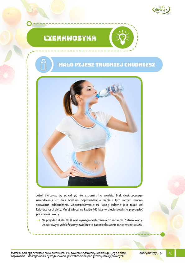 Dodatkowo do opracowanego planu dietetycznego otrzymasz atrakcyjnie przygotowane ciekawostki i wiadomości żywieniowe, które mam nadzieję pozwolą Ci zrozumieć wiele spraw związanych z nurtującym Cię problemem, a także przyczynią się do zwiększenia ogólnej wiedzy żywieniowej.