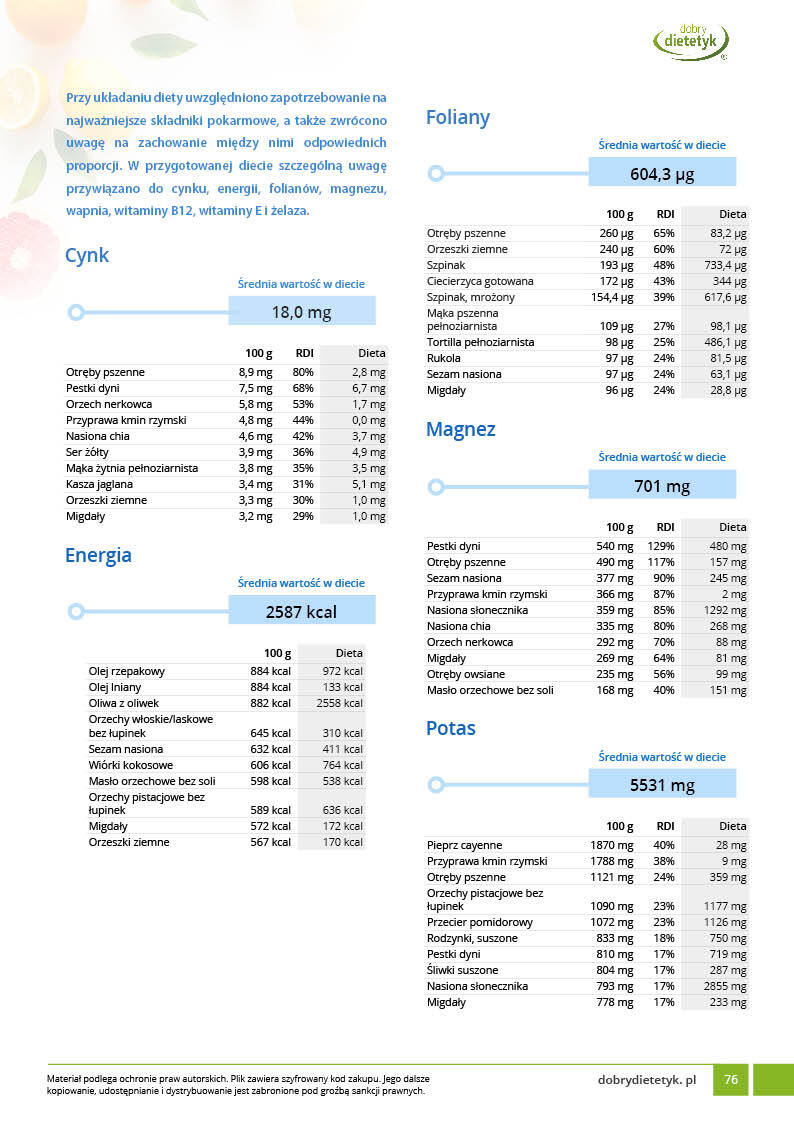 Dodatkowo do opracowanego planu dietetycznego otrzymasz atrakcyjnie przygotowane ciekawostki i wiadomości żywieniowe, które mam nadzieję pozwolą Ci zrozumieć wiele spraw związanych z nurtującym Cię problemem, a także przyczynią się do zwiększenia ogólnej wiedzy żywieniowej.