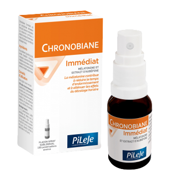 Chronobiane Immédiat to suplement diety w formie sprayu na bazie melatoniny oraz wyciągu z głogu. Melatonina pomaga skrócić czas zasypiania i łagodzi skutki jet lagu. Głóg chroni serce, normuje ciśnienie krwi, a także jest wskazany w stanach nadmiernej pobudliwości, rozdrażnienia czy bezsenności. Podjęzykowa forma sprayu sprawia, że melatonina jest bardziej biodostępna, a jej działanie szybsze. Jednym z podstawowych składników mechanizmu snu jest melatonina, hormon wytwarzany naturalnie przez szyszynkę w ciemności. Wydzielając melatoninę, szyszynka informuje mózg, że jest ciemno i że jest to dobry czas na sen. Synteza melatoniny rozpoczyna się przy braku światła i osiąga maksimum między 2 a 4 rano, a następnie spada w drugiej połowie nocy, aby przygotować się na czuwanie. U niektórych osób ten komunikat nie działa już prawidłowo, powodując trudności w zasypianiu lub opóźniając czas snu. „Resynchronizację” można uzyskać podwyższając poziom melatoniny dzięki 1 lub 2 rozpyleniom Chronobiane Immediate przed snem lub w momencie przebudzenia (1 rozpylenie dostarcza 0,5 mg melatoniny). Rekomendowany do suplementacji w przypadku: • trudności z zaśnięciem, • łagodzenia skutków jet lagu, • budzenia się w nocy, celem ułatwienia ponownego zaśnięcia. Środki ostrożności dotyczące stosowania: może być podawany tylko dzieciom i młodzieży na podstawie porady lekarskiej. Niezalecany dla kobiet w ciąży i / lub karmiących piersią, osób cierpiących na choroby zapalne lub autoimmunologiczne, epileptyków, astmatyków oraz osób z zaburzeniami nastroju, zachowania lub osobowości. W połączeniu z leczeniem farmakologicznym należy zasięgnąć porady lekarza lub farmaceuty.Rekomendowany do suplementacji w: